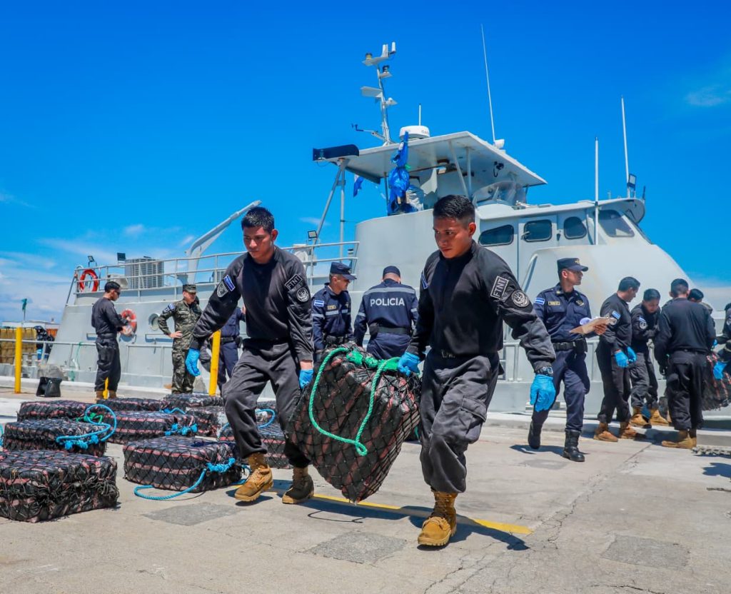 En una operación realizada a 1,150 millas náuticas (2,130 kilómetros), al suroeste de la Bocana El Cordoncillo, Estero de Jaltepeque, la Marina Nacional ha logrado una importante incautación de 1,795 kilos de cocaína en aguas internacionales, valorada en más de $44.8 millones de dólares, la embarcación interceptada era tripulada por tres personas de nacionalidad ecuatoriana.
